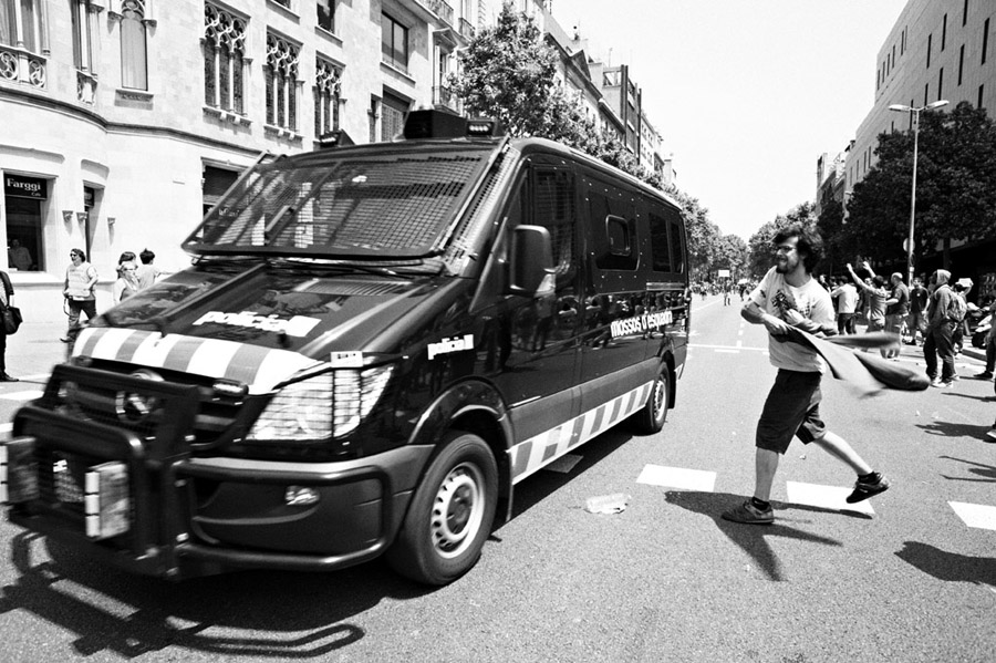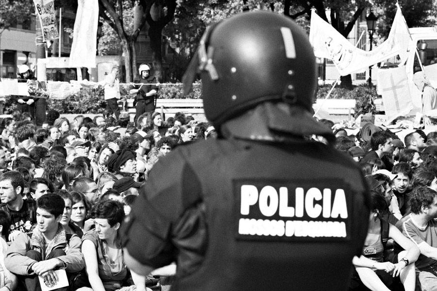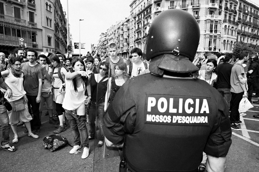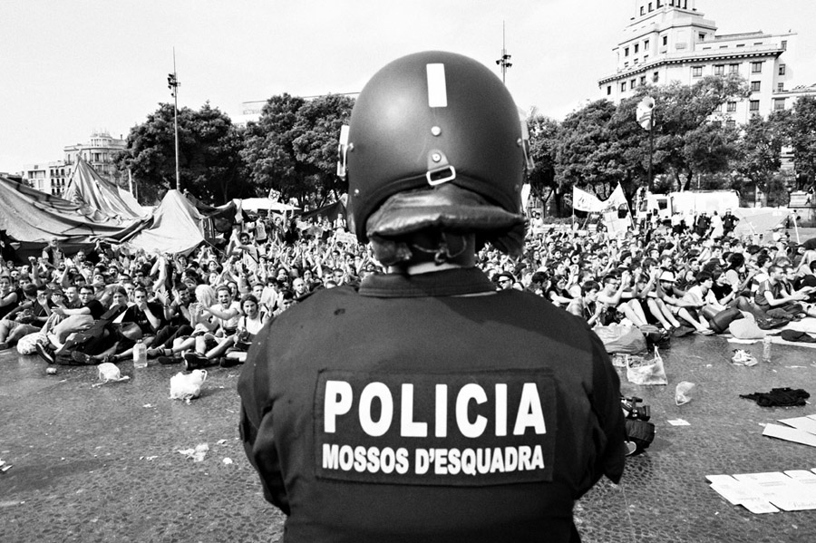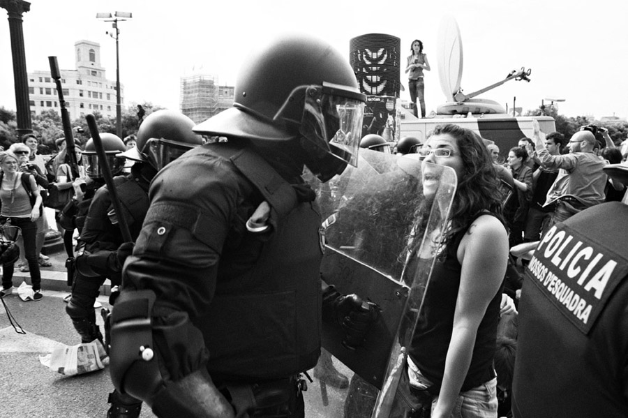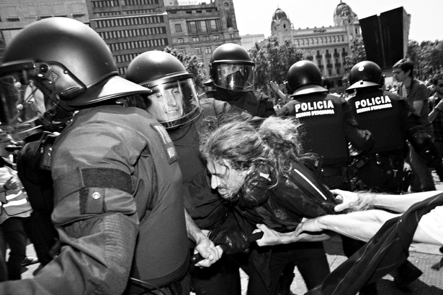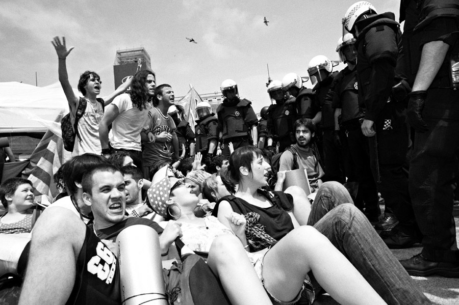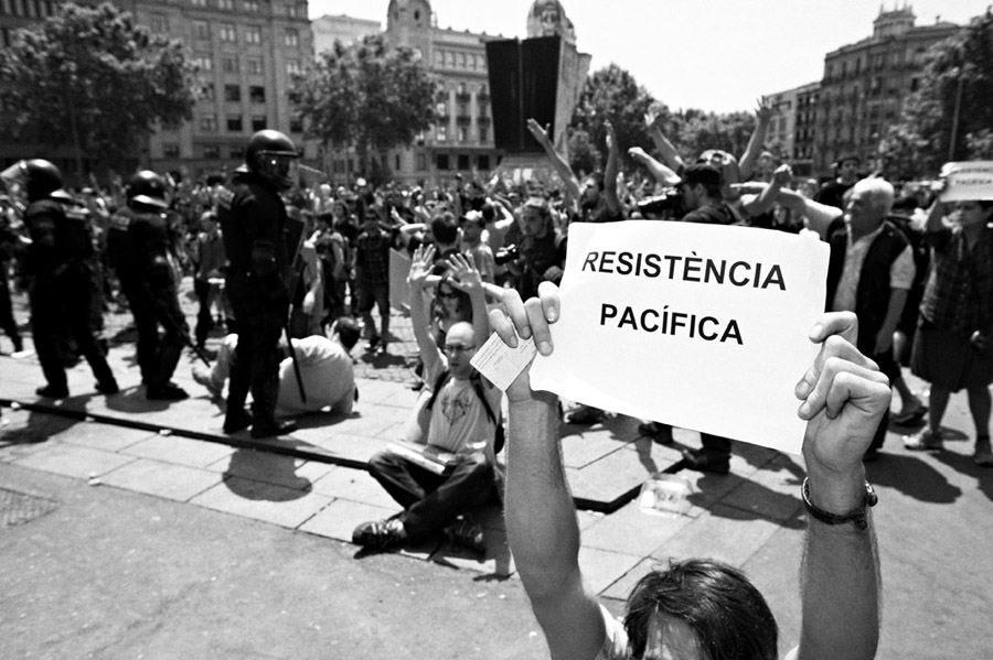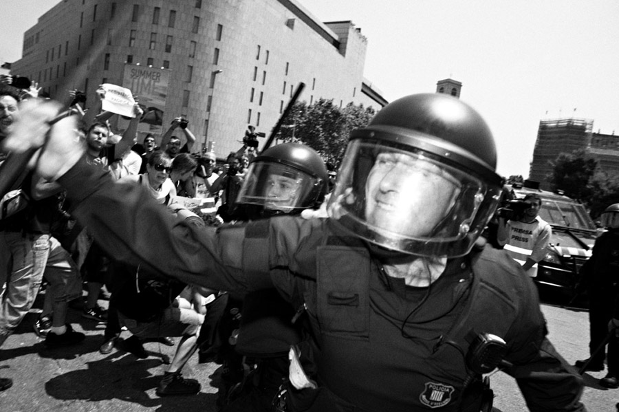 27 de Maig de 2011, primer intent de desallotjament de l’acampada de Plaça Catalunya de Barcelona per part dels Mossos d’Esquadra i la Guàrdia Urbana.