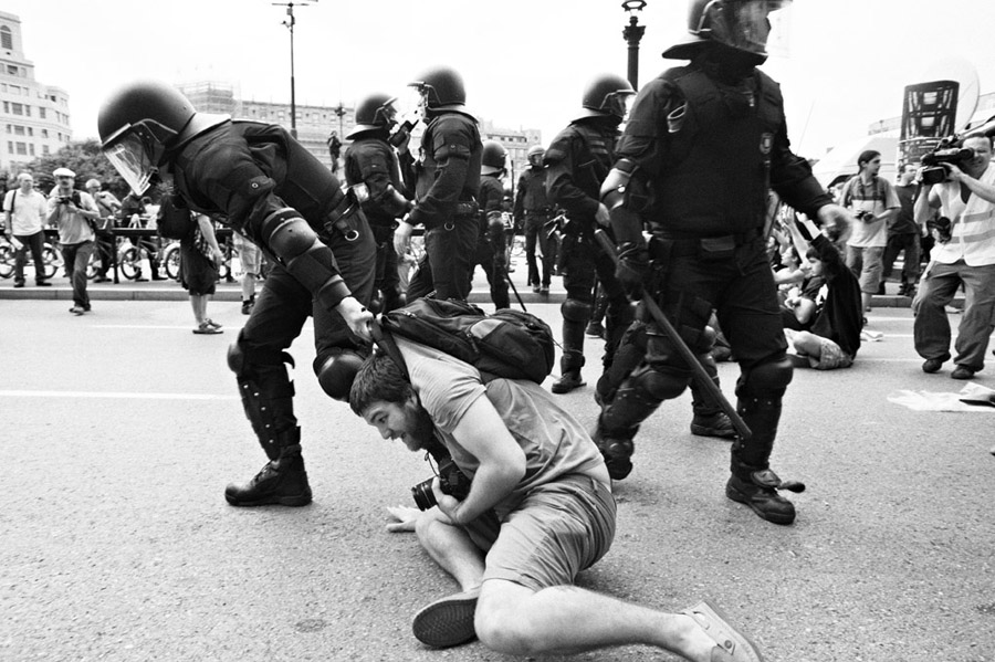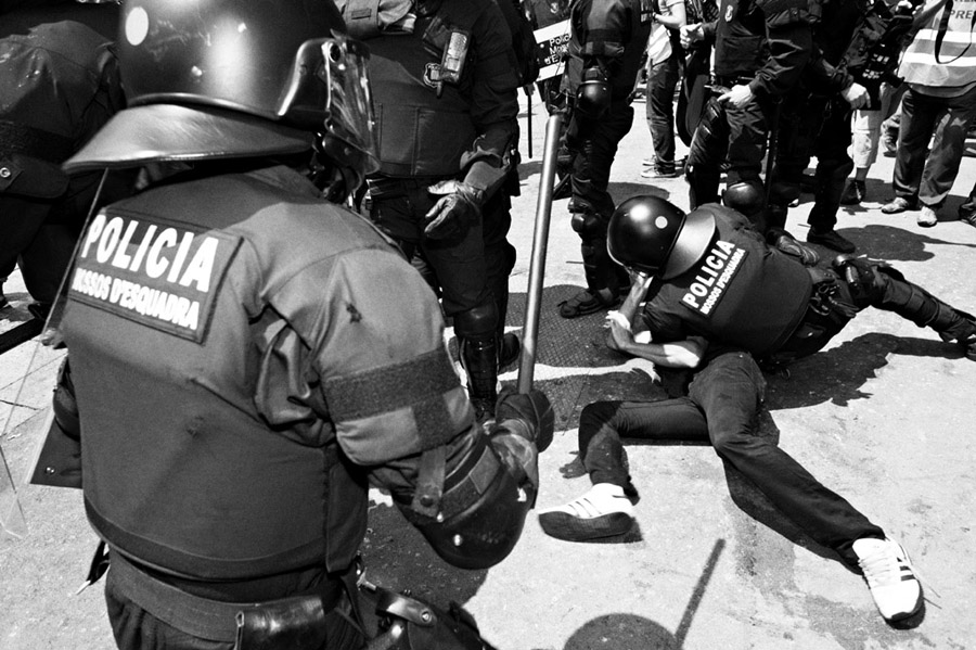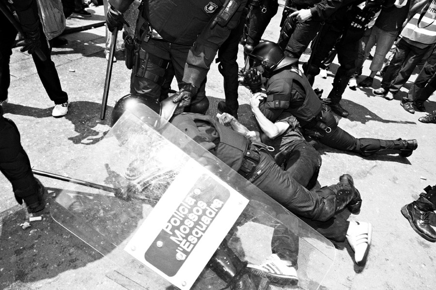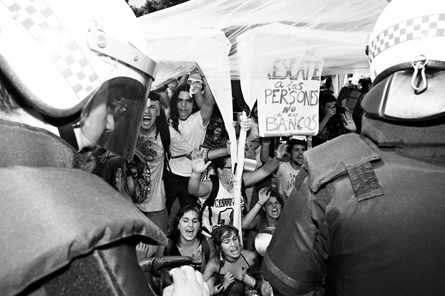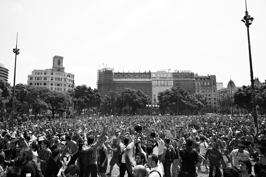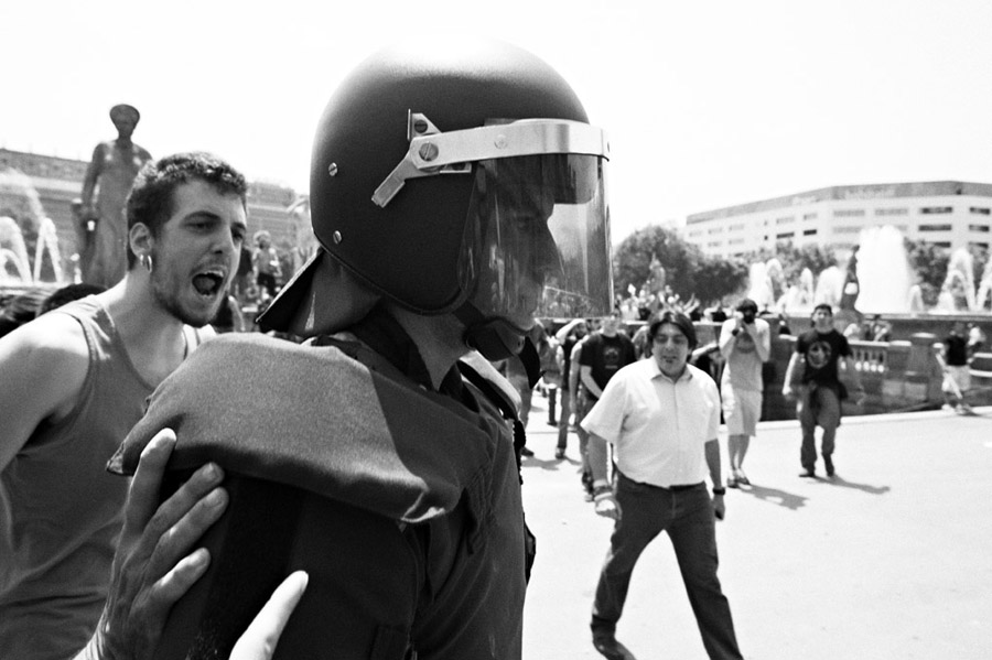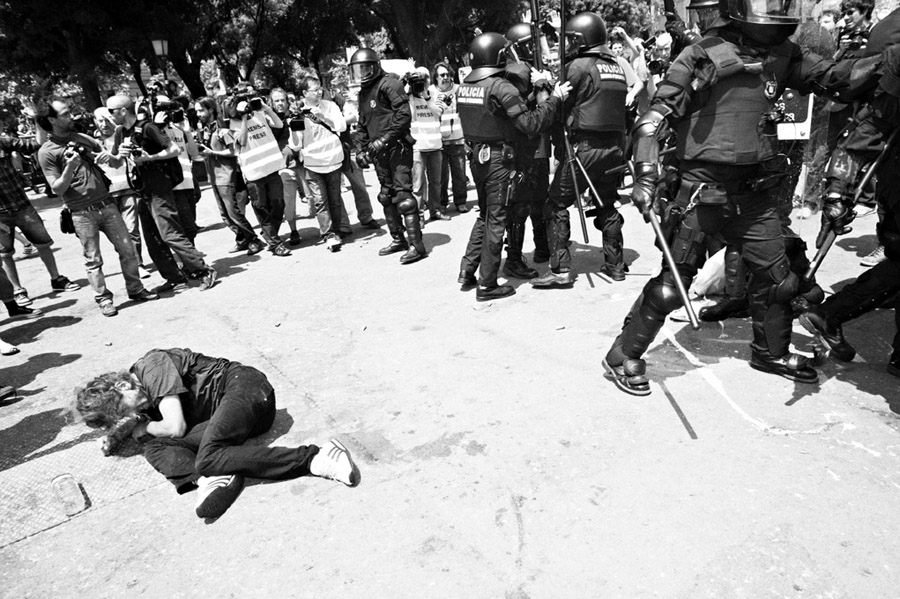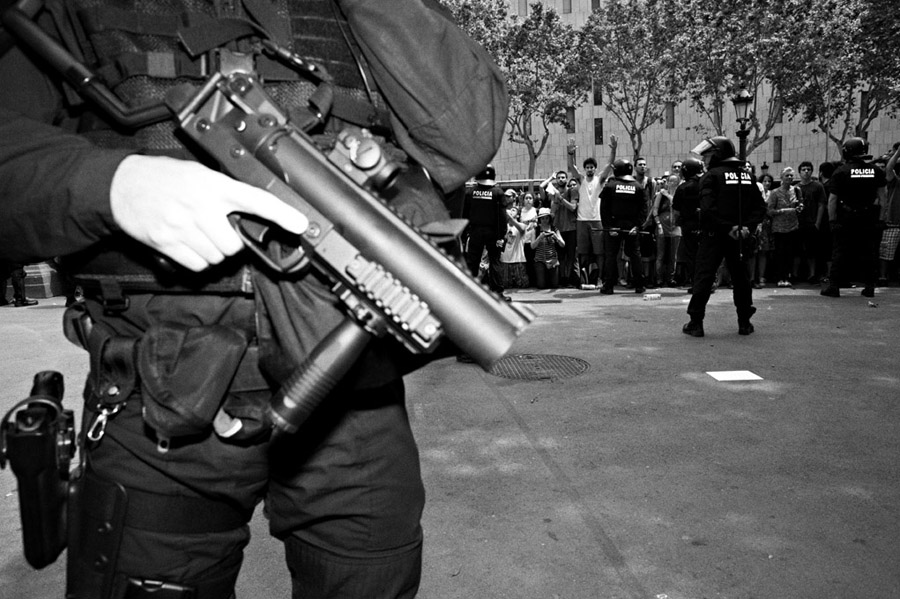 27 de Maig de 2011, primer intent de desallotjament de l’acampada de Plaça Catalunya de Barcelona per part dels Mossos d’Esquadra i la Guàrdia Urbana.