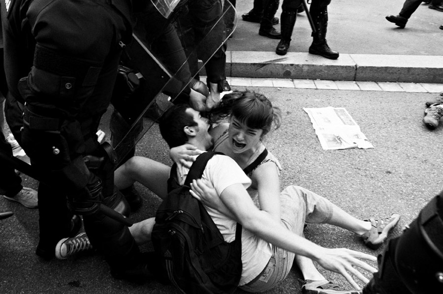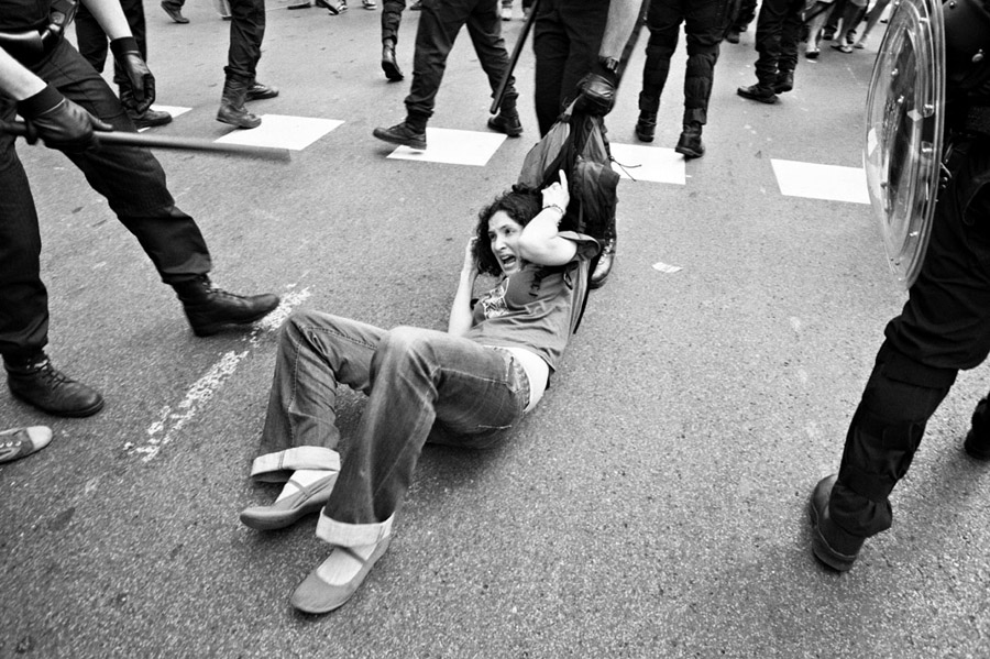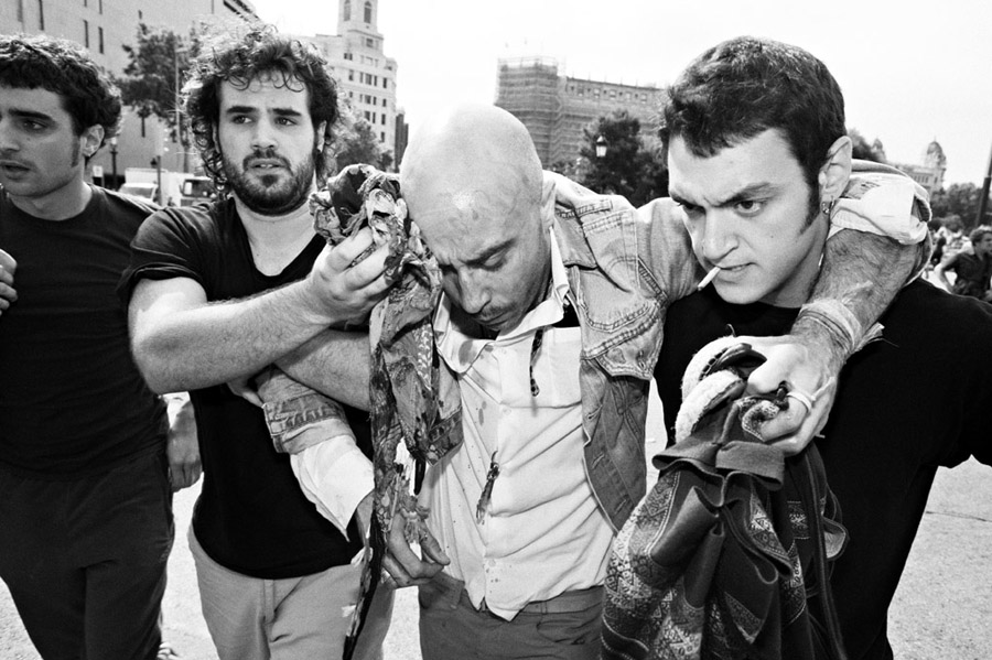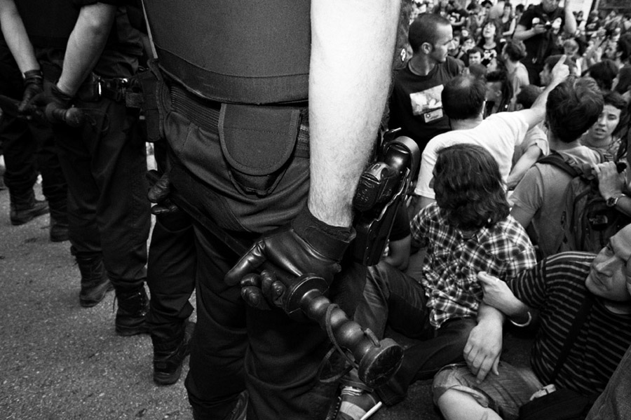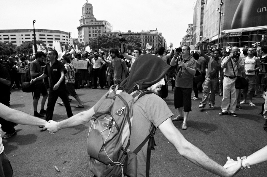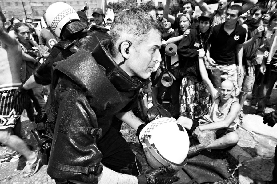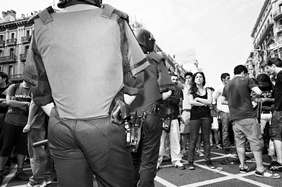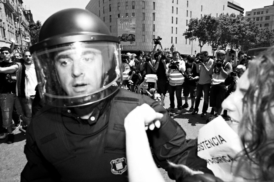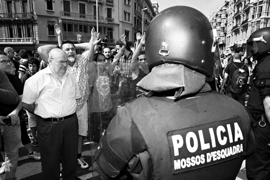 27 de Maig de 2011, primer intent de desallotjament de l’acampada de Plaça Catalunya de Barcelona per part dels Mossos d’Esquadra i la Guàrdia Urbana.