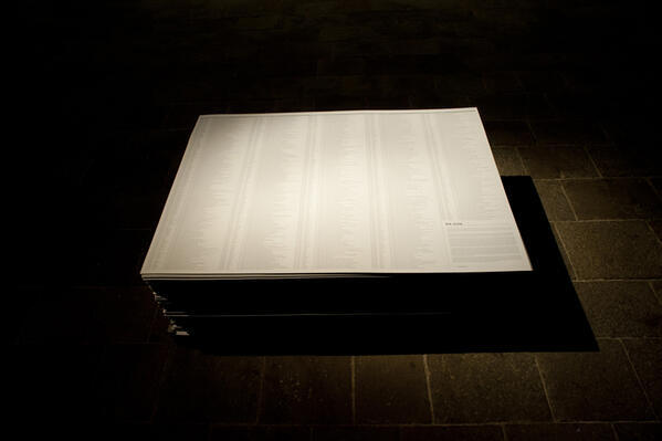 El projecte es presenta amb la llista a gran escala en panells verticals i un bloc central de posters agrupats que reprodueixen la llista de 15.518 desapareguts no identificats que el visitant es pot emportar; un esquema de les institucions implicades en el control de la migració i 3 pantalles amb les entrevistes realitzades a les convidades a la Jornada Ciutadana, persones influents en l’actual mapa filosòfic, polític i cultural. Al costat d’aquests elements es presenta el registre de vídeo i àudio de la Jornada Ciutadana convocada l'11 de maig així com el cartell convocant a aquesta.